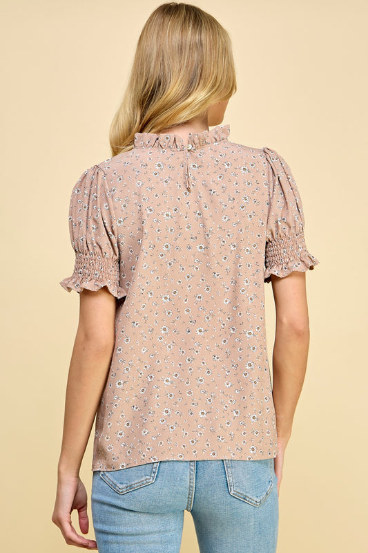 Taupe Floral Puff Short Sleeve Top