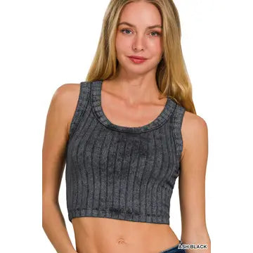 Ribbed Cropped Scoop Neck Tank Top