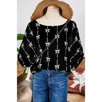 Bow Print Mesh Long Sleeve Top