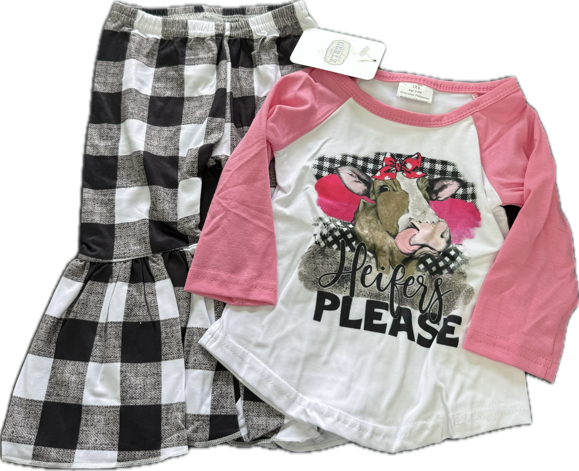 Gurlz Pink Checkered Cow Outfit