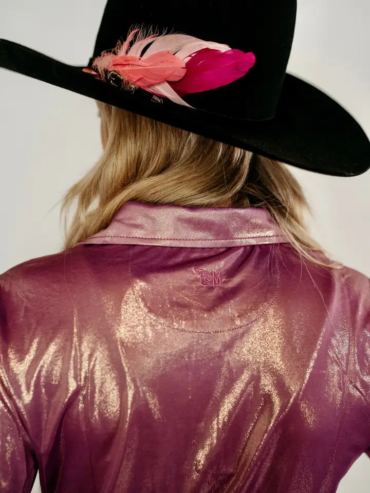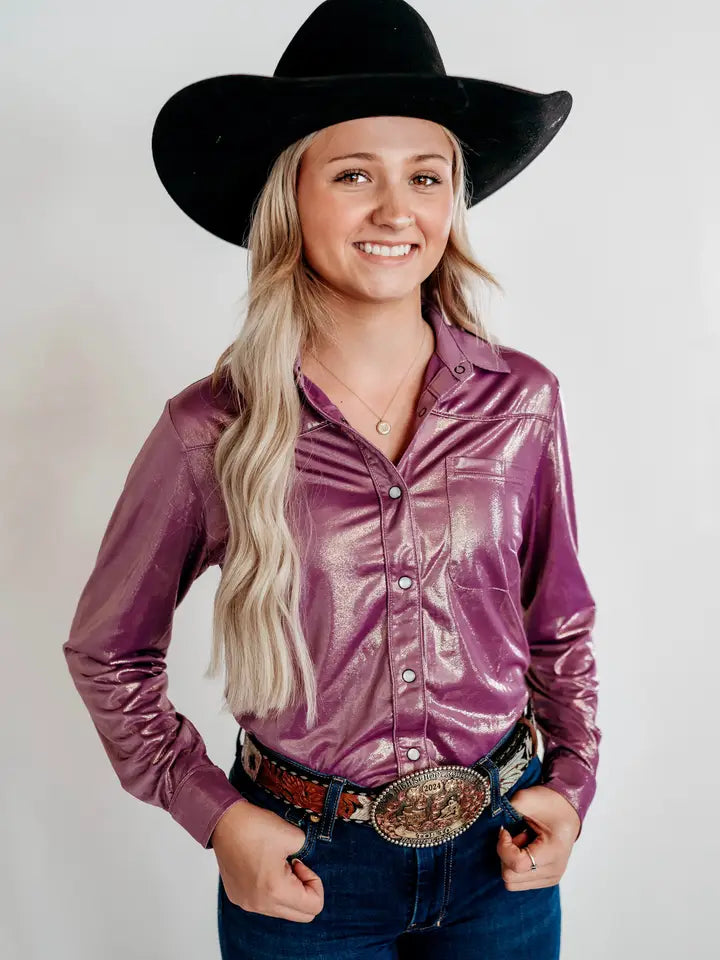Introducing the Lilac Pearl Snap - the perfect addition to your wardrobe. Made with a metallic fabric, this light weight and thin Pearl Snap is ideal for both casual and formal occasions.
