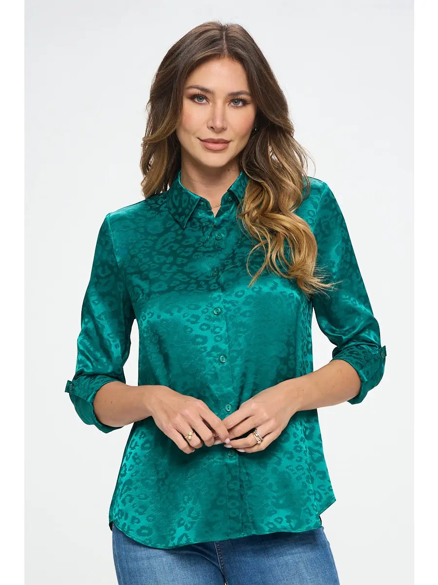 Designed for the showgirl who’s not afraid to stand out, it offers a flattering fit with just the right amount of structure. The crisp collar and button-down front make it ideal for layering under a vest or blazer, while the vibrant print adds personality to your performance.